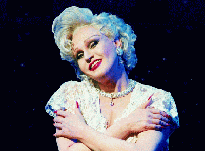 Ein großartiger Liedtext im Duett vor der Leinwand.