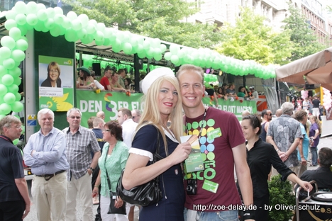 Die erste Person im Bannkreis des Politik-Trucks, die ich fragte, konnte mir leider garnicht erklären, was es mit diesem Slogan auf sich hatte (6 setzen), also zog ich weiter zum nächsten Flyer-Verteiler. Er wusste etwas mehr, nämlich, dass die Schwulen und Lesben in den Artikel drei mit aufgenommen werden sollen. Als ich ihn dann allerdings fragte, was der denn überhaupt aussagen würde, erwischte ich ihn auf dem falschen Fuß und er musste zugeben, dass er keinerlei Ahnung habe und überhaupt sei er noch nicht so lange in der Partei… (Mut zur Lücke aufgedeckt 4-) ..