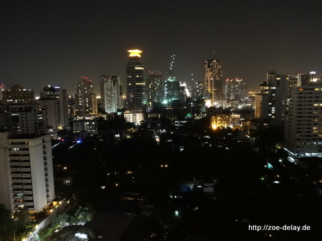 Eigentlich sind es zwei Gebäude – noch dazu ziemlich hohe. Ich selber residiere im 19. Stock und da ist die Aussicht schon ziemlich klasse. Mein Tower geht bis zum 42. Stockwerk und auf einer Terrasse auf Stockwerk ist ein Swimmingpool mit großartiger Aussicht zu jeder Tages und Nachtzeit geöffnet – wie auch der Fitnessraum, der Pool, Airhockey usw. Raum, das Office und noch so einige Dinge. Alles for Free . Und ja, so ein Bad um halb eins über Bangkok, mit Ausblick auf die Stadt und Ihre Wolkenkratzer, das hat schon was.