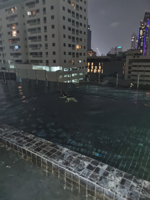 Ich hatte keine gute Nacht. Also eine sehr schlaflose und habe ab 6:30 morgens eine Kneipp Kur gemacht (Wassertreten in 1,50 Meter hohem Wasser)…. Also eher Wasserschlurfen, man will ja nicht drauf treten. Systematisch rechts links den Pool durch. Nach etwa 25-30 Minuten merkte ich etwas am rechten Fuss… Ein kurzer tauchgang. Und Ja. Es…