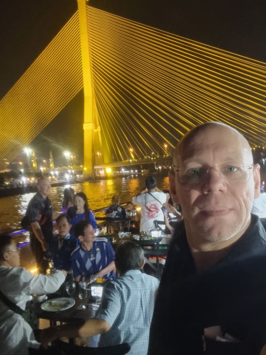 Fon hatte im Maggie Choo’s vorgeschlagen, die White Orchid River Cruise zu machen, eine Dinner Criuse über den Chao Phraya. Absolutes Touri Programm, aber Touri Programm, dass ich bisher noch nicht gemacht hatte. Ausserdem ein Dinner Bankett, insofern, ja, liebend gerne. Alle Boote fahren am Asiatique ab, dass immer ein wenig wie Asia Disneyland ausschaut,…