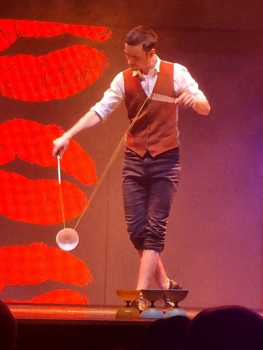 oder Jerry Tremblay mit seiner großartigen Art aus Artistik und Comedy. Was für ein cooler Typ. Leider fiel bei seiner ersten Nummer einer seiner Leuchtstäbe aus, aber es war trotzdem ein Genuss, ihm zuzuschauen.
