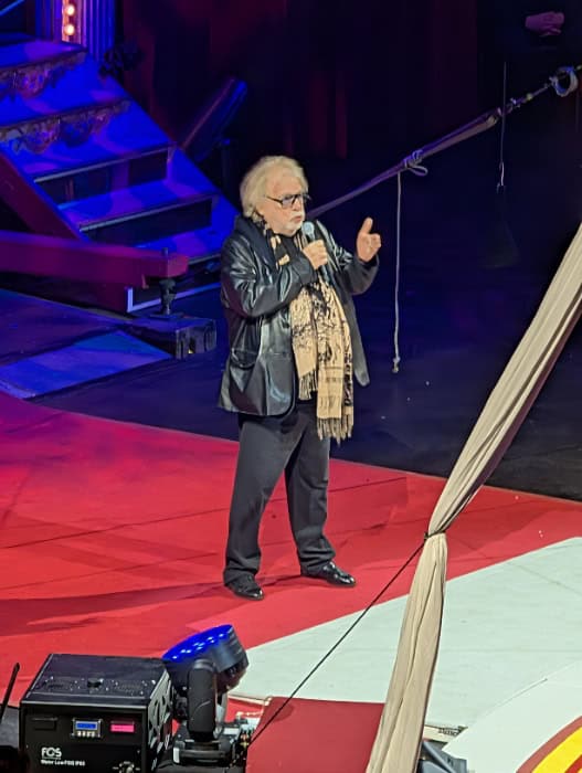 Vorher kam Bernhard Paul aber noch einmal in die Manege und sprach ein paar Worte zum Publikum, Es sei eine schlimme Zeit, aber Zirkus sei die älteste Gemeinschaft in der dem etwas entgegengebracht würde.
